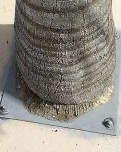 A thick metal base is attached to the bottom of the trunk to help with keeping the palm tree secure.