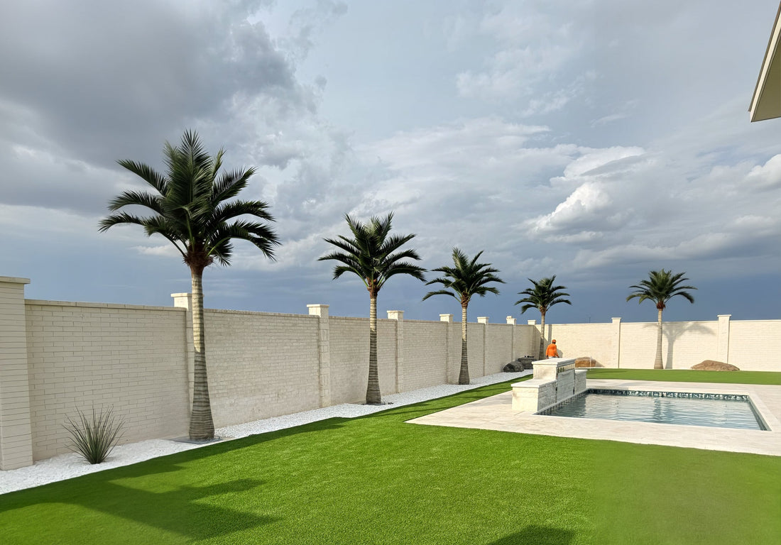 A thick metal base is attached to the bottom of the trunk to help with keeping the palm tree secure.