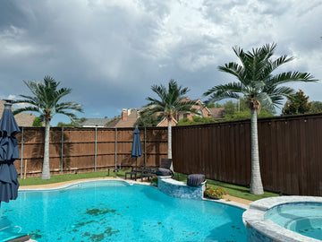 In Dallas, Texas we got hit with a huge storm where winds exceeded 80 mph. While neighboring properties delt with fallen mature trees and damaged fences, our artificial palms stood firm and undamaged. This resilience is owed to their robust construction and design specifically engineered to withstand harsh weather conditions.